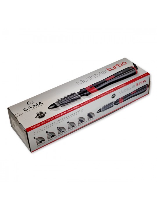 Το Turbo της GA.MA είναι ένα multistyler 6-σε-1, σχεδιασμένο για στέγνωμα, ίσιωμα και δημιουργία διαφορετικών looks, τόσο σε στεγνά όσο και σε βρεγμένα μαλλιά. Με ισχύ 1200 W, 3 ρυθμίσεις θερμοκρασίας και 3 ταχύτητες, προσφέρει έλεγχο και προσαρμογή σε κάθε τύπο μαλλιών. Διαθέτει 6 ανταλλακτικές κεφαλές, ανάμεσά τους τρεις στρογγυλές θερμαινόμενες βούρτσες, βούρτσα ισιώματος, ψαλίδι 19 mm για καλοσχηματισμένες μπούκλες και κεφαλή για γρήγορο στέγνωμα. Η τεχνολογία Nano Silver συμβάλλει στην αντιβακτηριακή προστασία, βοηθώντας στη διατήρηση της υγείας και της φυσικής λάμψης των μαλλιών, ενώ ο ελαφρύς, εργονομικός σχεδιασμός και το περιστρεφόμενο καλώδιο 360° εξασφαλίζουν άνεση και ευκολία σε κάθε χρήση.
