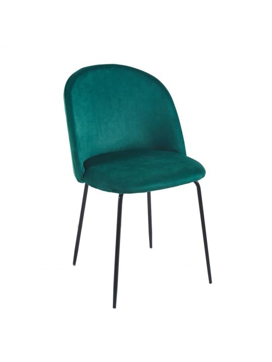 Καρέκλα μεταλλική Nextdeco Iris πράσινη Υ77x48x52εκ με βελούδινη πράσινη ταπετσαρία και μαύρα μεταλλικά πόδια από ατσάλι.
