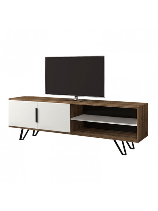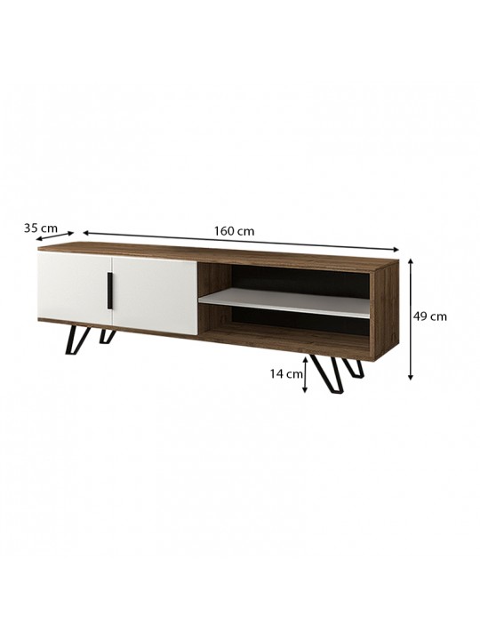 Έπιπλο τηλεόρασης Foot Megapap από μελαμίνη χρώμα καρυδί - λευκό 160x35x49εκ.