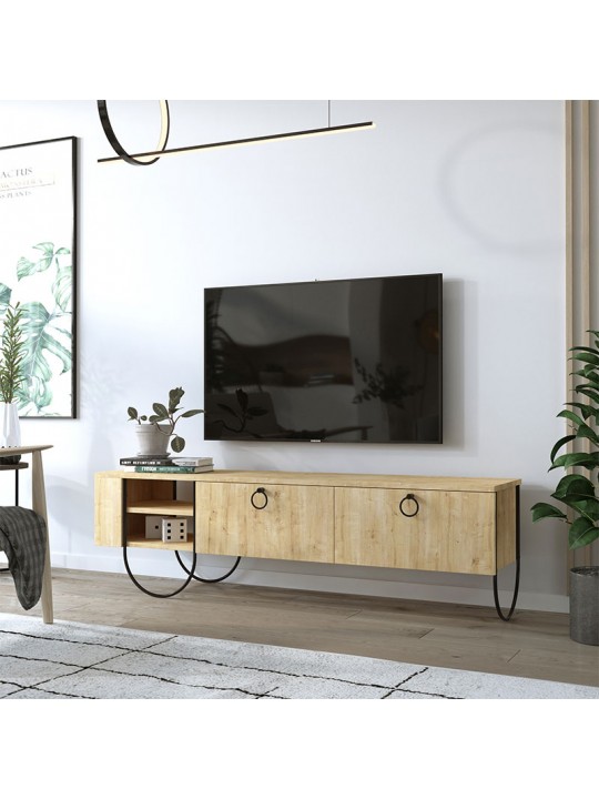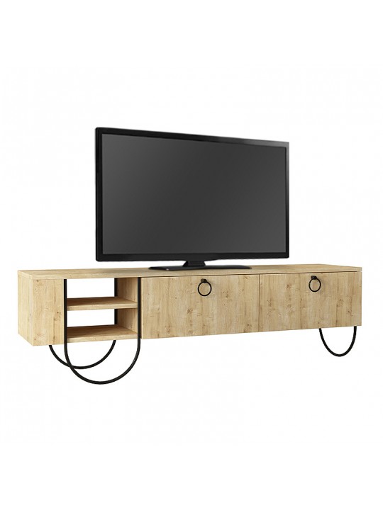 Έπιπλο τηλεόρασης Norfolk Megapap από μελαμίνη χρώμα φυσικό οξιάς 151x35x43εκ.