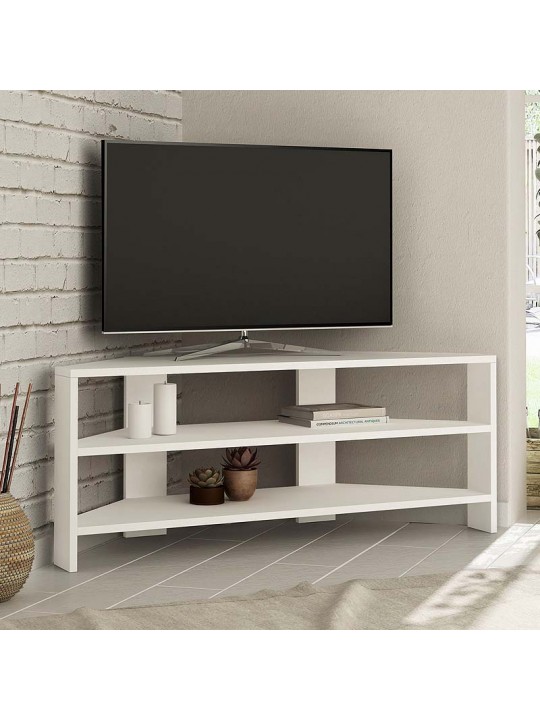 Έπιπλο τηλεόρασης γωνιακό Thales Megapap μελαμίνης χρώμα λευκό 110x36x45εκ.