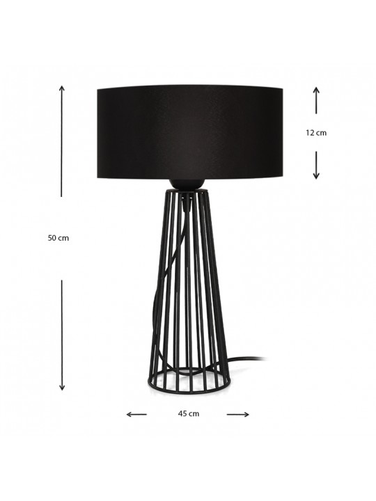 Φωτιστικό επιτραπέζιο Filip Megapap E27 μεταλλικό - υφασμάτινο χρώμα μαύρο 25x25x45εκ.