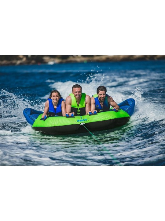 Αυτό το ρυμουλκούμενο 3 ατόμων σας προσφέρει εύκολη είσοδο χάρη στο σχήμα του. Είναι πραγματικά ένα διασκεδαστικό ρυμουλκούμενο, που παρέχει έναν συνδυασμό ενθουσιασμού, σταθερότητας και άνεσης.