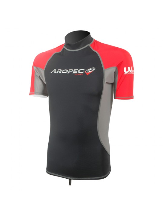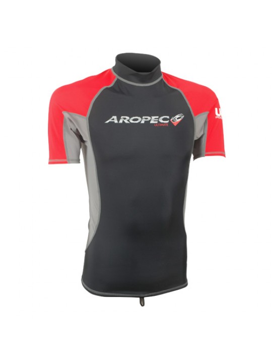 Aropec - UV αντηλιακή λύκρα με κοντό μανίκι Ανδρική Στενή εφαρμογή Μαύρη/Κόκκινη - Aropec