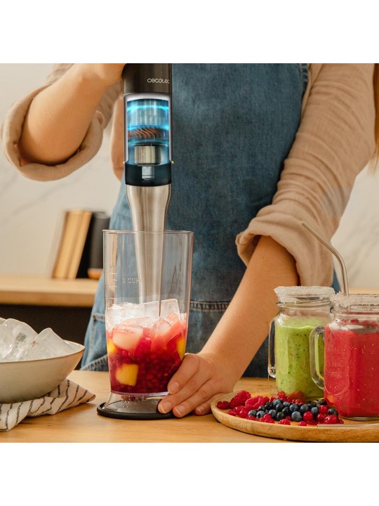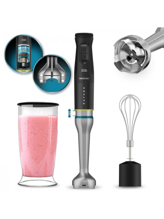 Το ραβδομπλέντερ Katana 15 TotalDestroy Cream B της Cecotec διαθέτει 8 λεπίδες με επίστρωση τιτανίου, ισχύ 1500W και αποσπώμενο δοχείο χωρητικότητας 0.8 Lt για κορυφαία απόδοση! Με το σύστημα Fix Plus εξασφαλίζει εύκολη αποσυναρμολόγηση της ράβδου, ενώ με τη δυνατότητα ρύθμισης της ταχύτητας και τη λειτουργία Turbo, προσαρμόζεται άψογα σε κάθε τύπο τροφίμου. Με το σύστημα PerreoMove εξασφαλίζει την αυτόματη - ανοδική και καθοδική - κίνηση των λεπίδων για την καλύτερη ανάδευση των υλικών, ενώ ξεχωρίζει για την προστασία κατά του πιτσιλίσματος, την εργονομική σχεδίαση με πλήκτρα για μεγαλύτερη άνεση και την επίστρωση soft touch που προσφέρει ξεκούραστο κράτημα. Είναι ιδανικό για τη δημιουργία συνταγών με βελουτέ σούπες ή σάλτσες και dips με κρεμώδη υφή και κατάλληλο για τον θρυμματισμό πάγου! Η συσκευή είναι κατασκευασμένη από φιλικά προς το περιβάλλον υλικά, χωρίς BPA ή άλλα τοξικά, εξασφαλίζοντας μέγιστη υγιεινή.