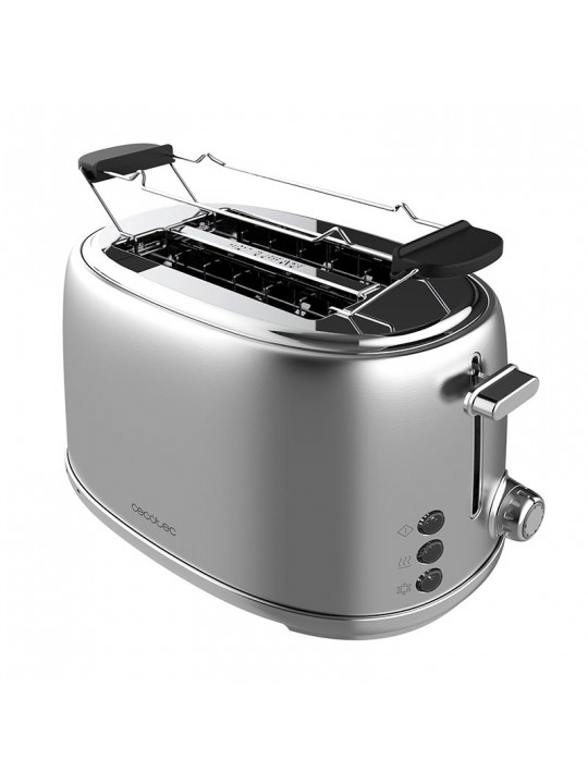 Φρυγανιέρα 2 θέσεων από τη Cecotec, σε ασημί χρώμα! Αποτελεί την ιδανική προσθήκη σε κάθε κουζίνα, αφού διαθέτει 6 επίπεδα ροδίσματος, 3 λειτουργίες (απόψυξη, θέρμανση και ακύρωση), δυνατότητα αυτόματου κεντραρίσματος της φέτας του ψωμιού και πολλά ακόμη μοναδικά χαρακτηριστικά. Έτσι, επιτρέπει το ομοιόμορφο και άψογο φρυγάνισμα κάθε τύπου ψωμιού, ενώ ο εντυπωσιακός retro σχεδιασμός της, την καθιστά ιδανική για τη διακόσμηση κάθε κουζίνας!