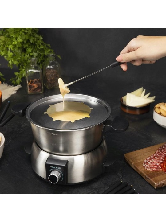 Η συσκευή για φοντύ Fun GourmetFondue της Cecotec είναι η ιδανική επιλογή για τους λάτρεις του λιωμένου τυριού και της σοκολάτας! Η συσκευή είναι κατασκευασμένη από ανοξείδωτο ατσάλι, διαθέτει ισχύ 1000 W και είναι κατάλληλη για την παρασκευή φοντύ με τυρί ή σοκολάτα, καθώς και για τηγάνισμα. Διαθέτει ρυθμιζόμενο θερμοστάτη για ακριβή έλεγχο της θερμοκρασίας, αντιθερμικές λαβές για εύκολη μετακίνηση και σύστημα κατά του πιτσιλίσματος εξασφαλίζοντας μέγιστη ασφάλεια και καθαριότητα κατά τη χρήση. Ιδανική για 8 άτομα, περιλαμβάνει 8 πιρούνια και αποσπώμενα εξαρτήματα που πλένονται στο πλυντήριο πιάτων.