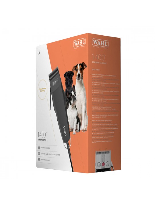 Η κουρευτική μηχανή ρεύματος για κατοικίδια 1400 της WAHL διαθέτει ισχυρό DC μοτέρ 5.300 rpm που προσφέρει υψηλή απόδοση, ακριβές αποτέλεσμα αλλά και σταθερή ισχύ. Έρχεται με λεπίδα ακριβείας "MADE IN GERMANY" από ανοξείδωτο ατσάλι υψηλής ποιότητας, ρυθμιζόμενο μήκος κοπής 0.7-3 mm, πλάτος κοπής 46 mm και 4 χτενάκια 4.5, 6, 9 και 14 mm για απόλυτη ευελιξία στο styling των κατοικίδιων. Διακρίνεται για την εργονομική της κατασκευή και είναι κατάλληλη για μικρόσωμους σκύλους.