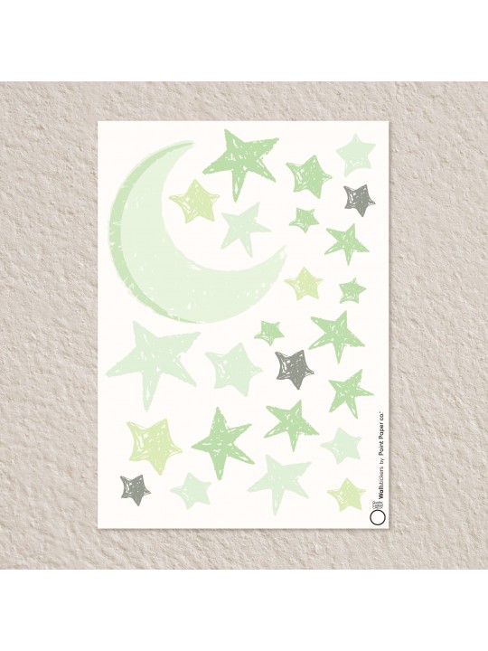 Διακοσμητικό Υφασμάτινο Αυτοκόλλητο Τοίχου Αστεράκια - Pen green