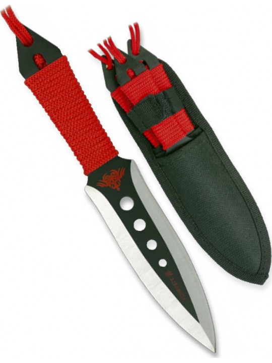 Martinez Albainox Μαχαίρι Ρίψης Επιβίωσης Κόκκινο με Λάμα από Ανοξείδωτο Ατσάλι σε Θήκη Σετ 3τμχ -32093
