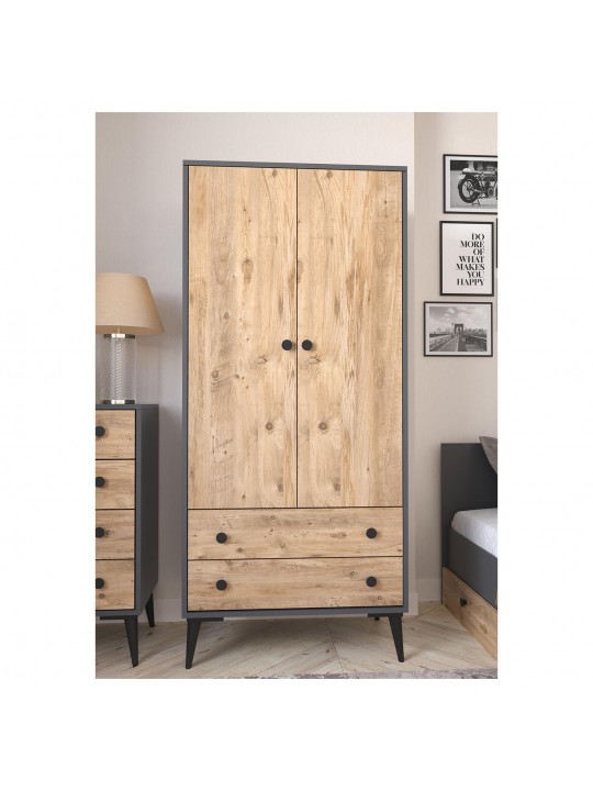 Ντουλάπα Δίφυλλη ArteLibre AMARI Ανθρακί/Δρυς Μοριοσανίδα 82x48x180cm