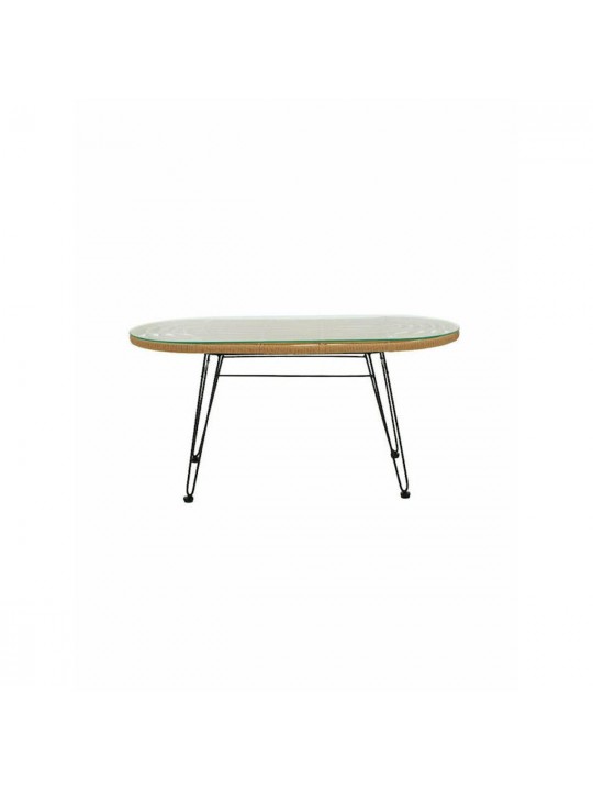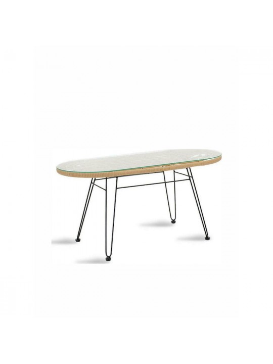 Τραπέζι Κήπου ARRIUS Φυσικό/Μαύρο Μέταλλο/Rattan/Γυαλί 100x45x46cm