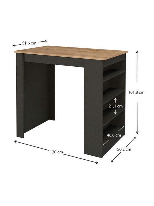 Τραπέζι μπαρ Monaco Megapap από μελαμίνη χρώμα ανθρακί - sapphire oak 120x51,6x101,8εκ.