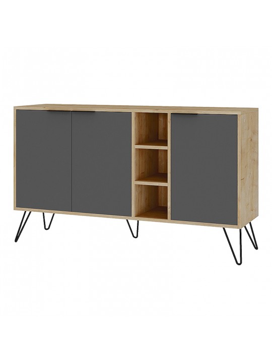 Μπουφές μελαμίνης Clara Megapap χρώμα φυσικό οξιάς - ανθρακί 142x35,6x83εκ.