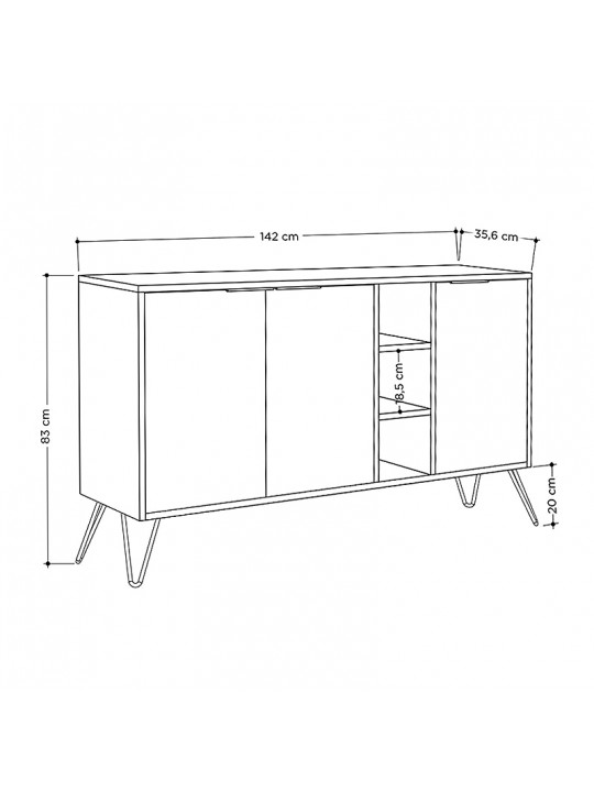 - Διαθέτει τρία ντουλάπια και 3 ράφια.