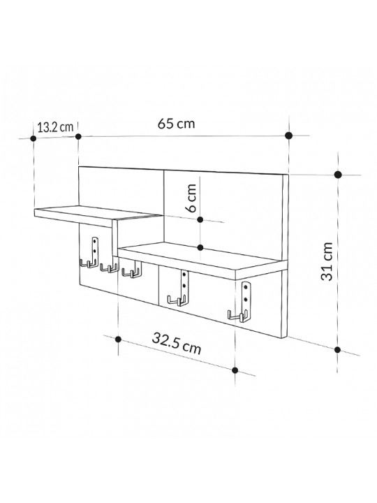 Κρεμάστρα τοίχου Harmon Megapap χρώμα sapphire oak - λευκό 65x15x31εκ.