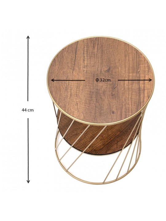 Βοηθητικό τραπεζάκι Jaspin Megapap μεταλλικό - Mdf χρώμα χρυσό - καρυδί 32x32x44εκ.