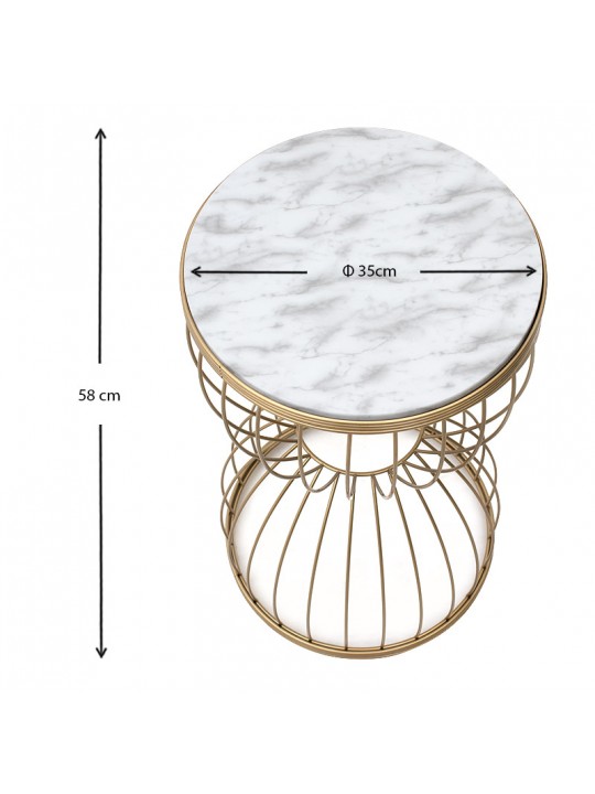 Βοηθητικό τραπεζάκι Pino Megapap μεταλλικό - Mdf χρώμα χρυσό - λευκό εφέ μαρμάρου 35x35x58εκ.