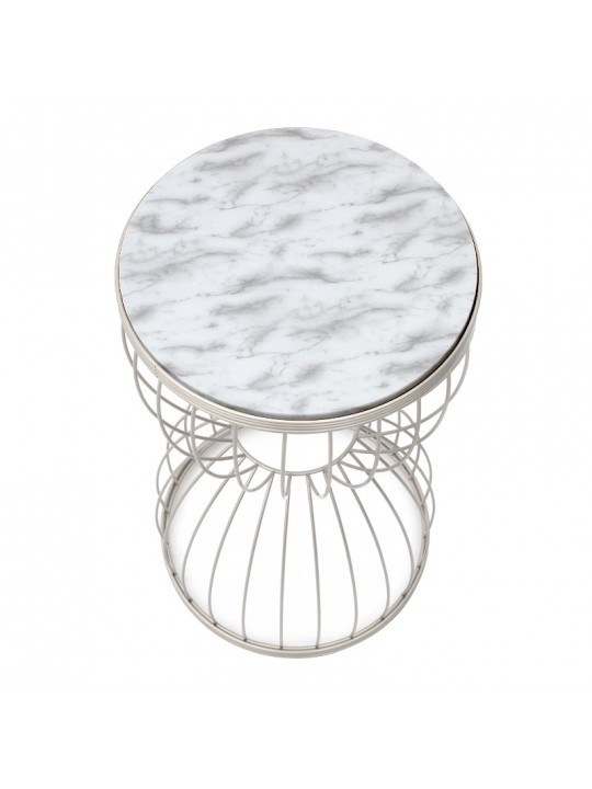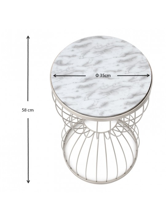 Βοηθητικό τραπεζάκι Pino Megapap μεταλλικό - Mdf χρώμα λευκό - λευκό εφέ μαρμάρου 35x35x58εκ.