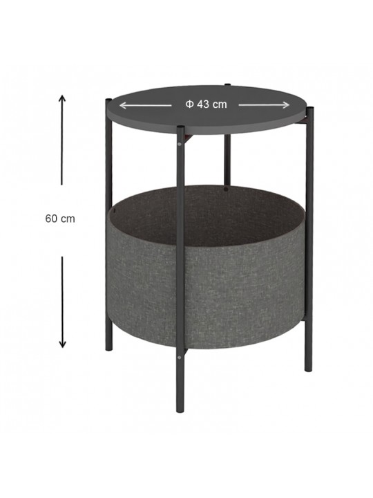 Βοηθητικό τραπεζάκι Kalid Megapap μελαμίνης - υφασμάτινο χρώμα ανθρακί - γκρι 43x43x60εκ.
