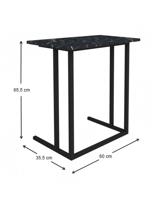 Βοηθητικό τραπεζάκι Jango Megapap μεταλλικό - μελαμίνης χρώμα μαύρο εφέ μαρμάρου 60x35,5x65,5εκ.