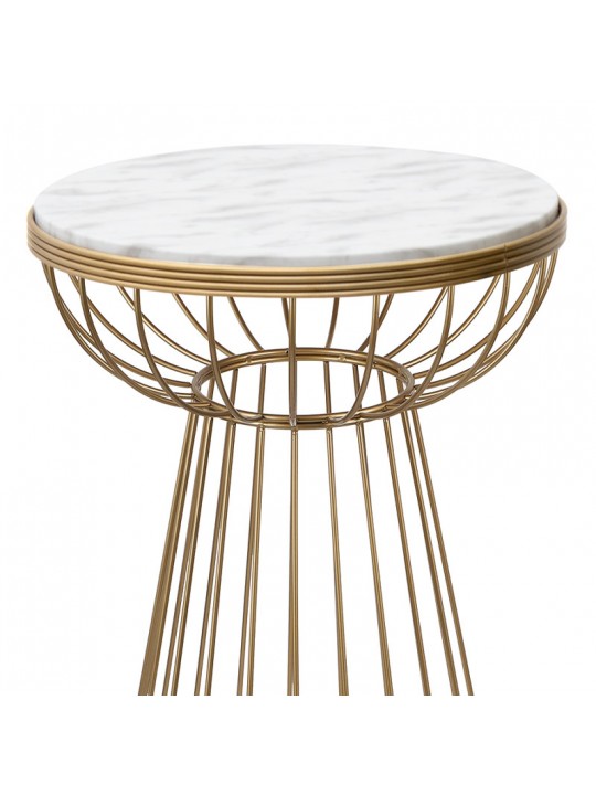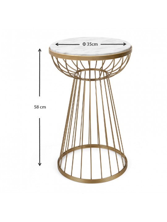 Βοηθητικό τραπεζάκι Mantare Megapap μεταλλικό - Mdf χρώμα χρυσό - λευκό εφέ μαρμάρου 35x35x58εκ.