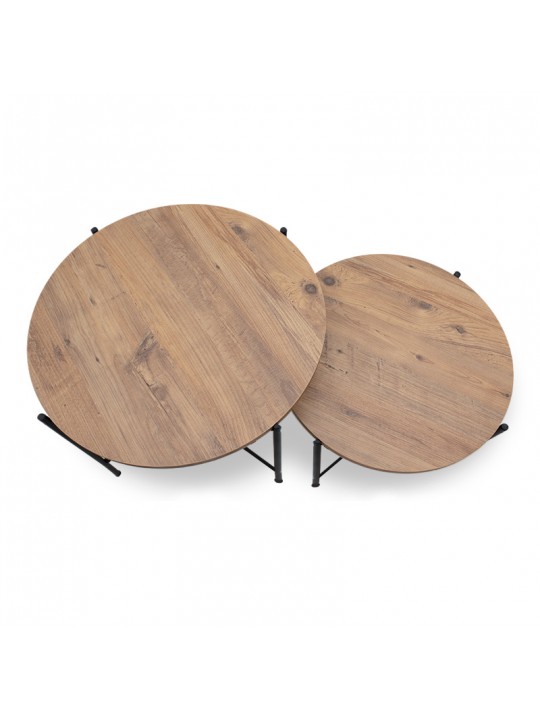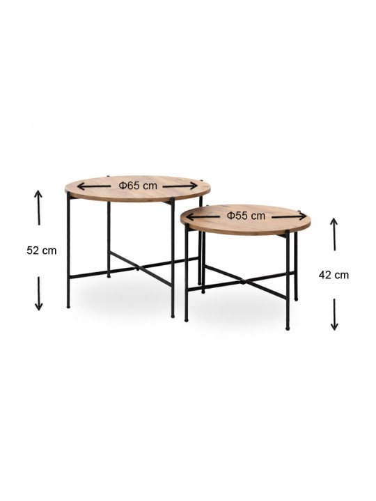Σετ τραπεζάκια σαλονιού Zayden Megapap 2 τμχ μεταλλικό - μελαμίνης χρώμα pine oak 65x65x52εκ.