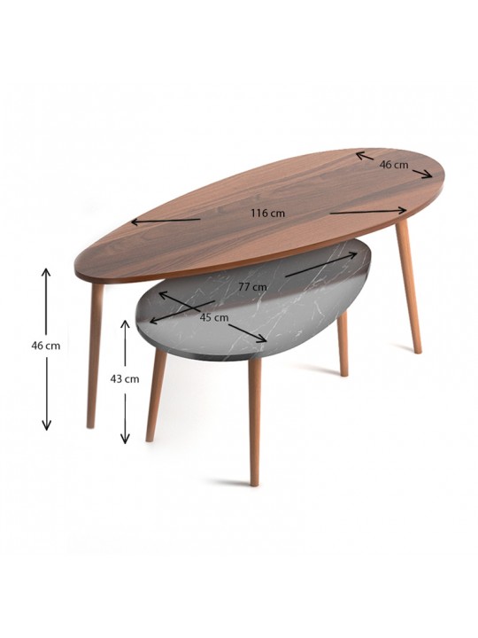 Βοηθητικά τραπεζάκια Elips Megapap από μελαμίνη χρώμα καρυδί - μαύρο εφέ μαρμάρου 116x46x46εκ.