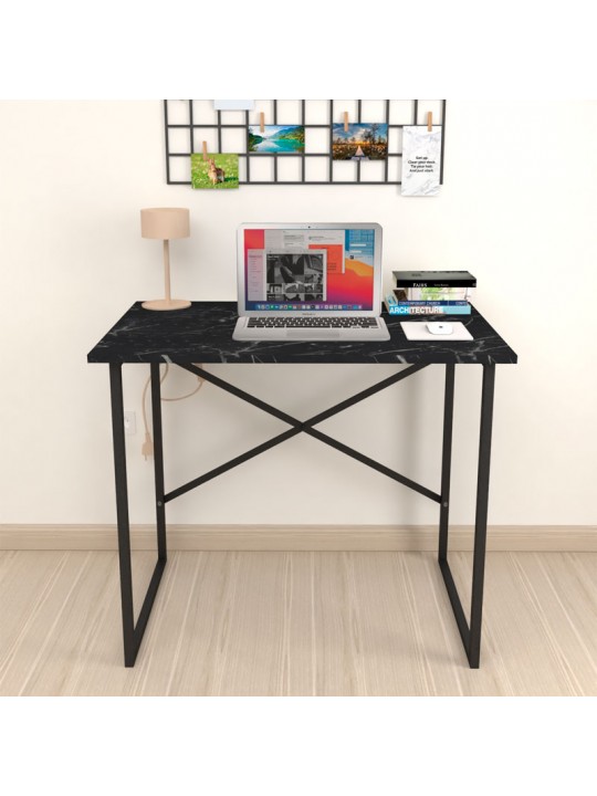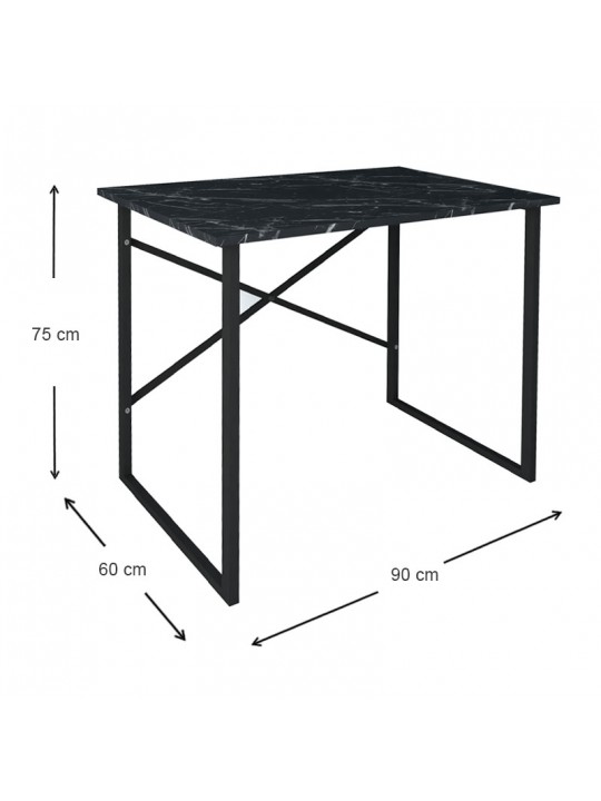Γραφείο εργασίας Rilke Megapap μεταλλικό - μελαμίνης χρώμα μαύρο εφέ μαρμάρου 90x60x75εκ.