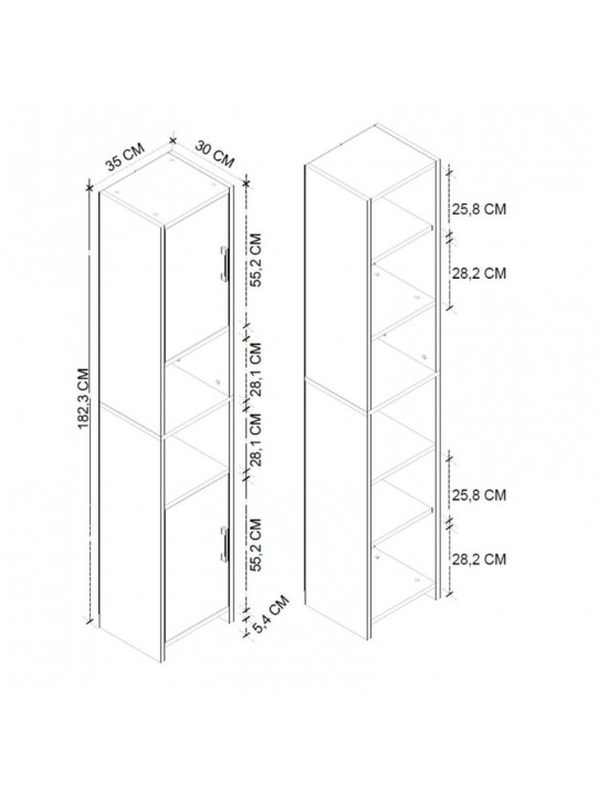 • Διαστάσεις: Μήκος 35 x Βάθος 30 x Ύψος 182,3 εκ.