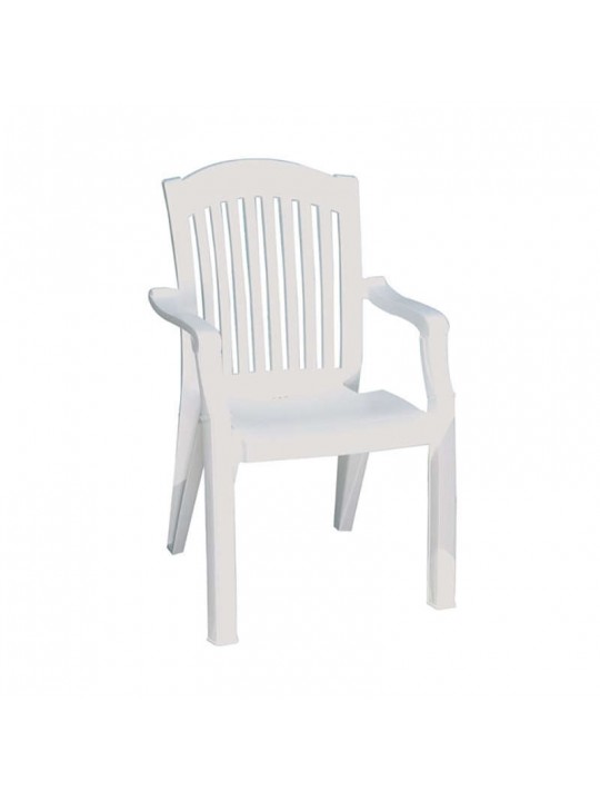 STAR πολυθρόνα του οίκου Siesta σε χρώμα λευκό. Ένα διαχρονικό κάθισμα με ιδιαίτερα μπράτσα για την βεράντα και τον κήπο σας. Είναι στοιβαζόμενη για εύκολη αποθήκευση.
