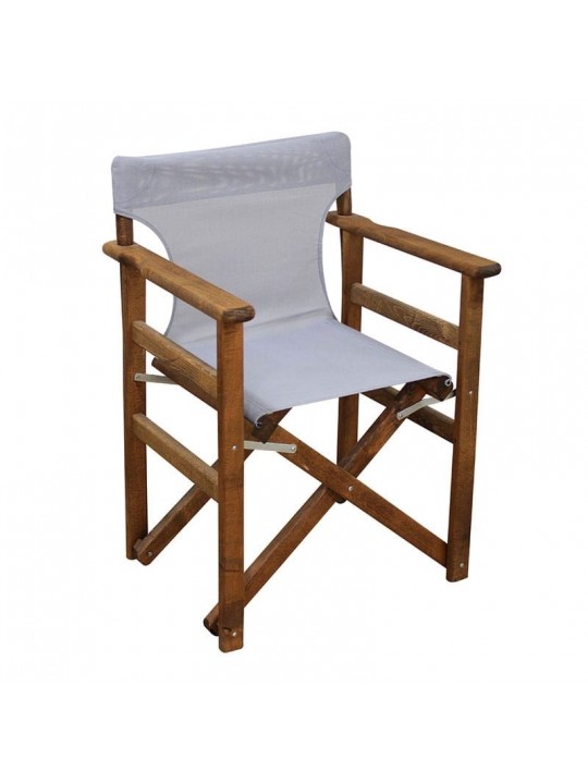 Torino σκηνοθέτη πολυθρόνα,ξύλινος σκελετός σε χρώμα καρυδί από ξύλο οξυάς και textilene 600gr σε χρώμα γκρί.Με κλασικό σχεδιασμό κατάλληλο για τον κήπο και την βεράντα σας.