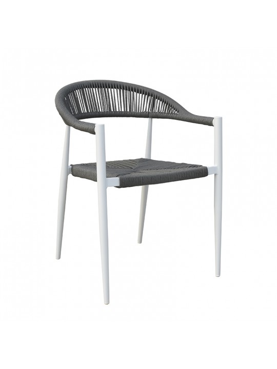 Valeria πολυθρόνα αλουμινίου με σκελετό βαφής σε χρώμα white με μοντέρνο design.Η πλάτη και το κάθισμα είναι με επένδυση από συνθετικό σχοινί σε χρώμα grey. Με στρογγυλεμένη πλάτη για μεγαλύτερη άνεση. Είναι στοιβαζόμενη για εύκολη αποθήκευση και κατάλληλη για εξωτερική χρήση.