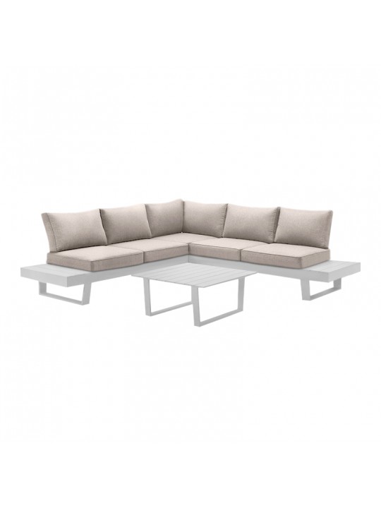 Σαλόνι κήπου γωνιακό Lyra Megapap σετ 3 τμχ μέταλλο - ξύλο χρώμα λευκό