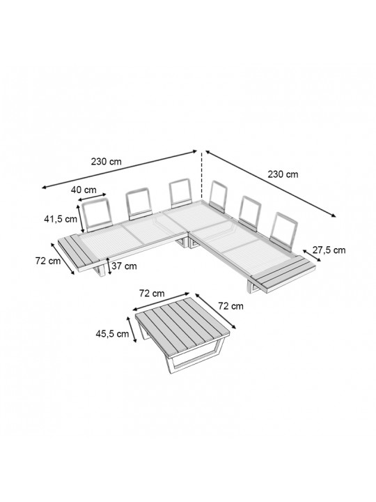 - Γωνιακός καναπές: Μήκος 230 x Βάθος 230 x Ύψος 37 εκ.
