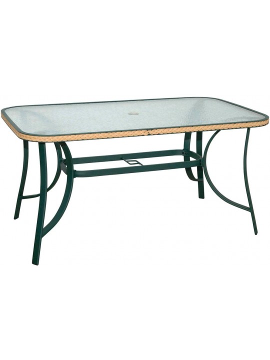 ΤΡΑΠΕΖΙ ΑΛΟΥΜΙΝΙΟΥ ΠΡΑΣΙΝΟ ΜΕ ΓΥΑΛΙ & ΜΕ ΚΟΤΣΙΔΑ-ΔΙΑΣΤΑΣΕΙΣ: L120xW70xH71cm