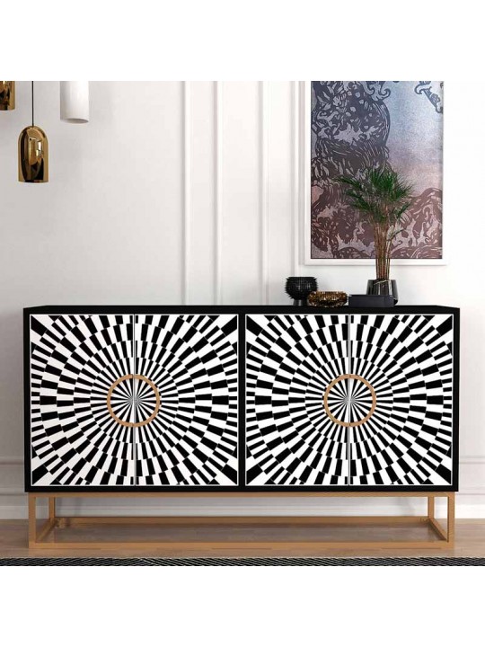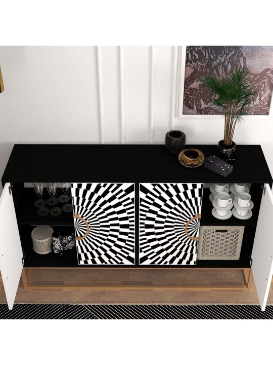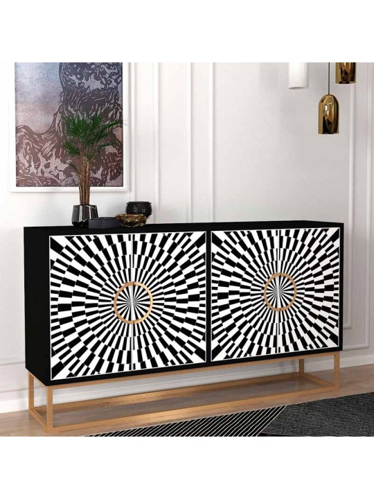 Μπουφές Gradel Megapap χρώμα μαύρο - ασπρόμαυρο 150x35x83,6εκ.