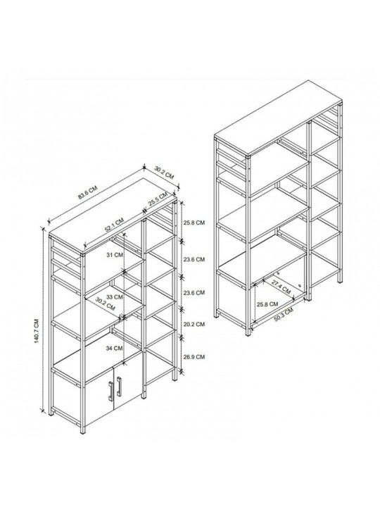 - Διαστάσεις: Μήκος 83,6 x Βάθος 30,2 x Ύψος 140,7 εκ.
