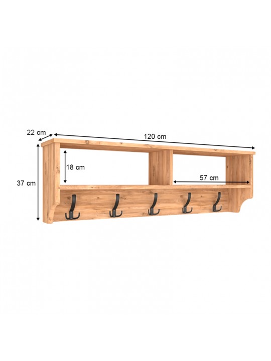 Κρεμάστρα τοίχου Ottila Megapap από μελαμίνη χρώμα pine oak 120x22x37εκ.