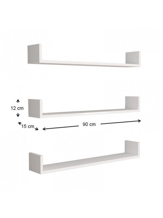 Ραφιέρα τοίχου Tyrion Megapap 3 τεμαχίων από μελαμίνη χρώμα λευκό 90x15x12εκ.