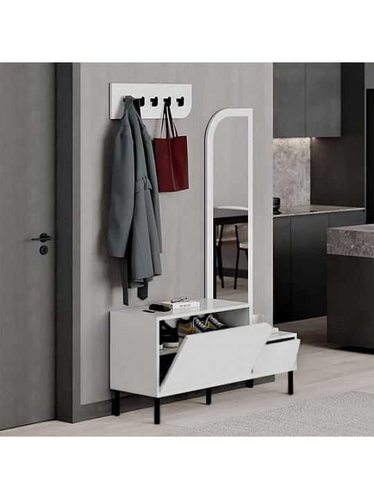 Έπιπλο εισόδου Mila Megapap με κρεμάστρα χρώμα λευκό 120x37x171,6εκ.