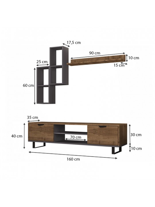 • Η σύνθεση αποτελείται από ένα έπιπλο τηλεόρασης και δύο ραφιέρες τοίχου.