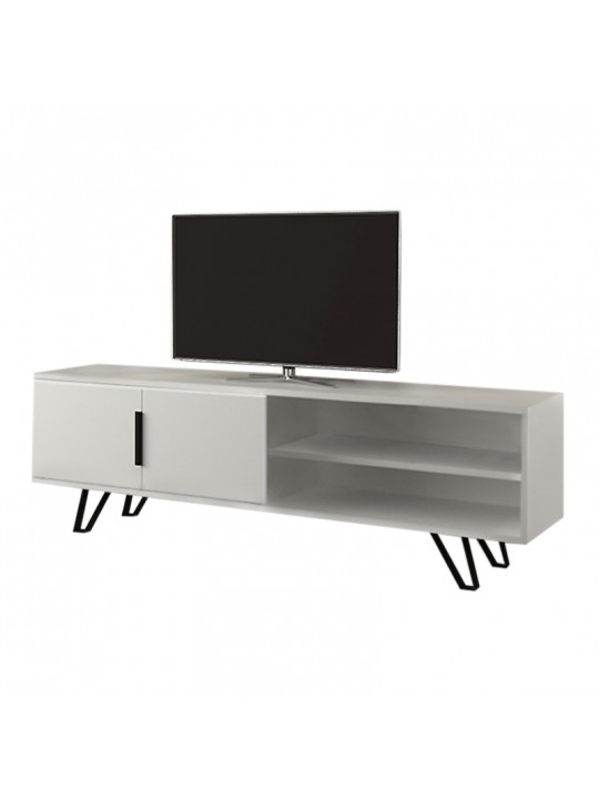 Έπιπλο τηλεόρασης Foot Megapap από μελαμίνη χρώμα λευκό 160x35x49εκ.