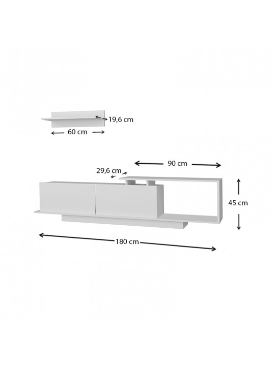 Έπιπλο τηλεόρασης Novara Megapap από μελαμίνη χρώμα λευκό 180x29,6x45εκ.