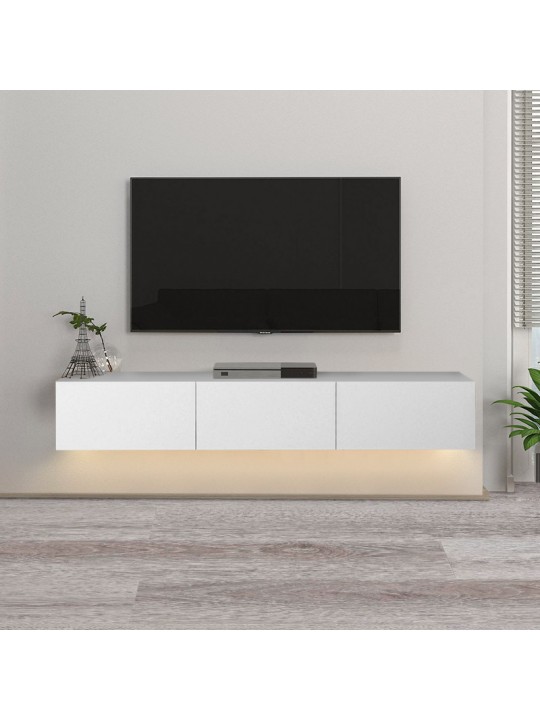 Έπιπλο τηλεόρασης επιτοίχιο Damla Megapap από μελαμίνη με LED χρώμα λευκό 180x29,5x29,5εκ.