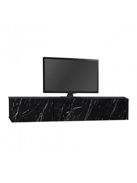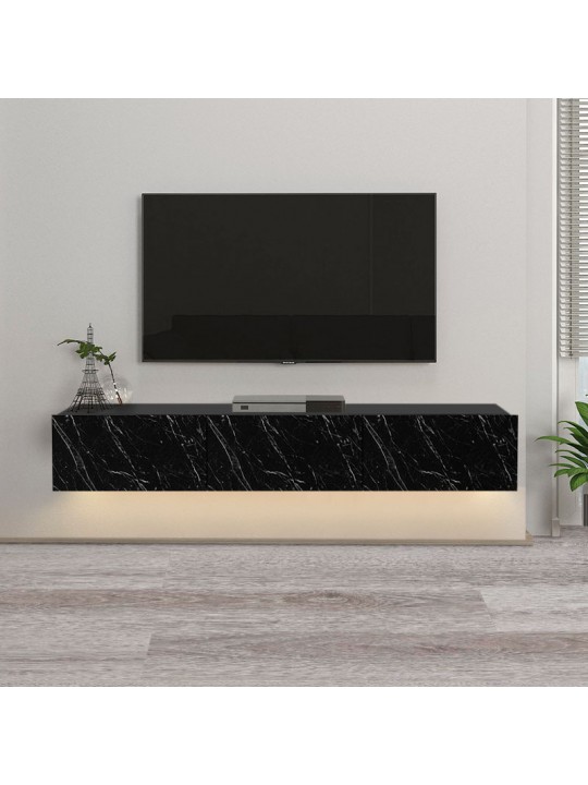 Έπιπλο τηλεόρασης επιτοίχιο Damla Megapap από μελαμίνη με LED χρώμα μαύρο εφέ μαρμάρου 180x29,5x29,5εκ.