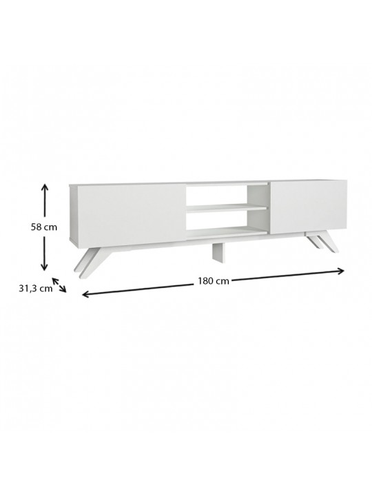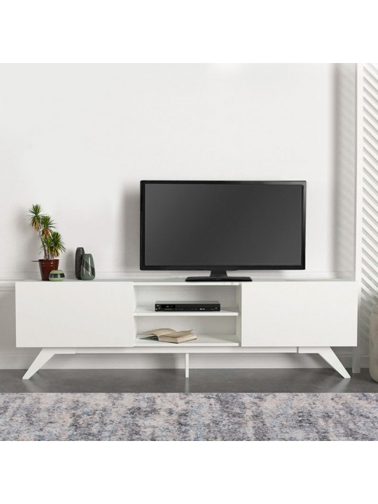 Έπιπλο τηλεόρασης Jarvis Megapap από μελαμίνη χρώμα λευκό 180x31,3x58εκ.