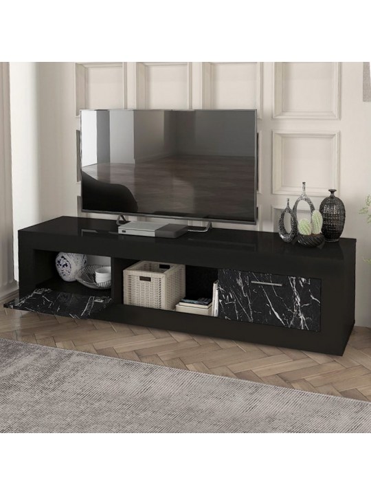 Έπιπλο τηλεόρασης Davin Megapap χρώμα μαύρο - μαύρο εφέ μαρμάρου 180x40x47εκ.