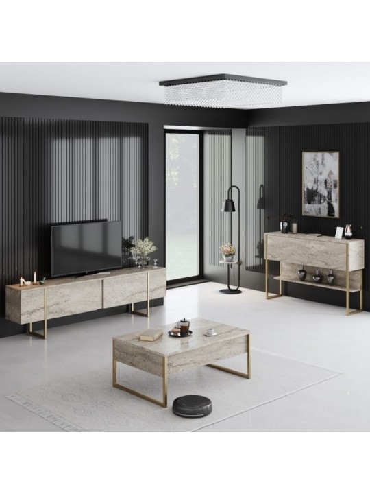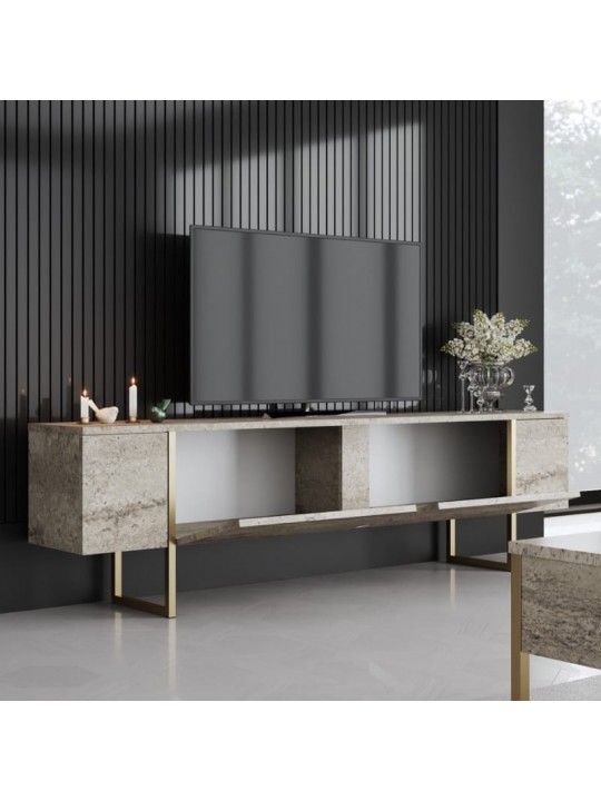 Έπιπλο τηλεόρασης Luxe Megapap χρώμα travertine - χρυσό 180x30x50εκ.