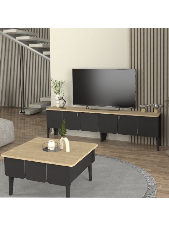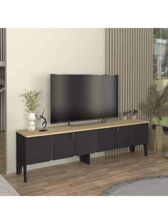 Έπιπλο τηλεόρασης Pedro Megapap χρώμα ανθρακί - rota oak 180x35x50,7εκ.